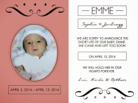 The past eight days have been a whirlwind of emotions. I remember everything like it happened yesterday. I remember sitting in my mothers living room, clutching Nathan so tight, while I sobbed. I remember feeling the heaviness in my heart. The physical ache in my chest that weighed tons. I remember living in the NICU and wanting nothing more than to wake up from my nightmare. I remember the awful feeling of trying to feel and ingrain every second of the days into my memory. I remember believing that I would have Emme longer. I remember her beautiful cry for me and the touch of her skin against mine as she nursed. The sound she made when she swallowed my milk. How her little body felt against mine, as she slept all night snuggled on my chest.